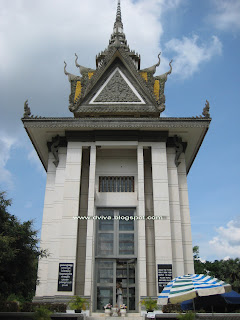 is a unique & special place which reflects the most barbarious & cruel crime committed by the Ultra Communist Khmer Rouge Regime during 1975-1979. here, about 20,000 ppl including foreigners were executed & murdered. obviously, 129 mass graves & about 8,000 human skulls at the site bear testimony to this unspeakable crime. in order to r'br the spirits of victims at this site & as well as over 3 millions victims throughout the country, a memorial charnel was built in the centre in 1988....